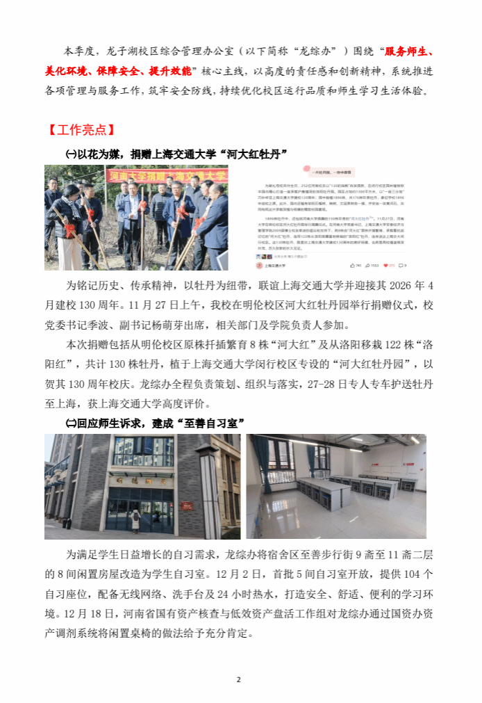 龙子湖校区综合管理办公室2025年第4期《工作季报》